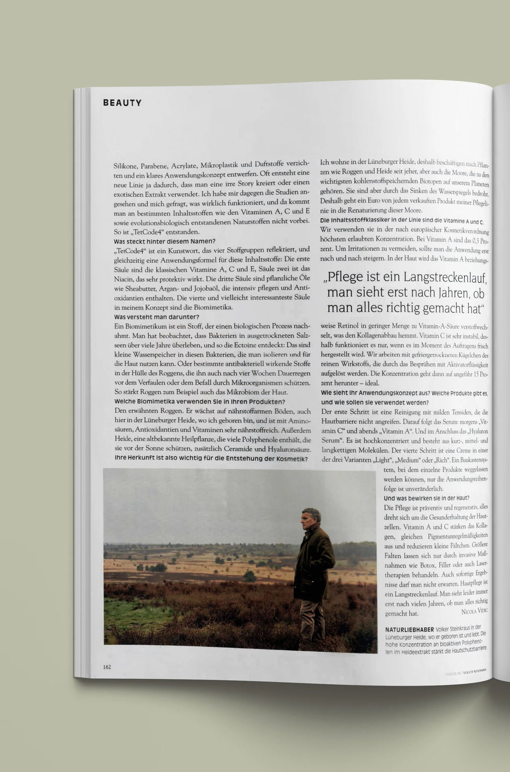 Hierbei greift die VOGUE unsere Maxime »Bridging Nature and Science« auf und erklärt den Kern der Marke.