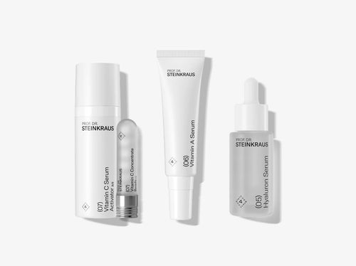 – just like vitamin C, also known as L-ascorbic acid, a collagen stabilizer and effective antioxidant that protects the skin from harmful external influences. The third beauty star in the group is hyaluronic acid, or hyaluronic acid for short. It's now making waves not only as a filler, but also as a moisture booster in cosmetics, giving the complexion a plump appearance and even smoothing wrinkles caused by dryness. Provided (and this applies to all three substances): the active ingredient type, concentration, formulation, and application are correct. Prof. Dr. Steinkraus explains what you need to consider so that these three "miracle cures" can develop their full effectiveness.