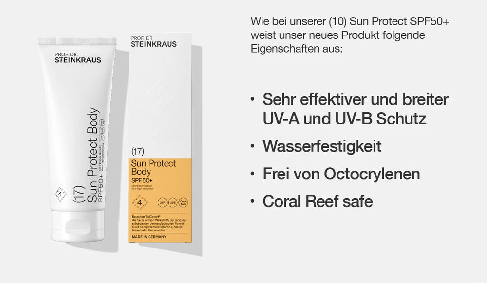 This often daily light sun exposure naturally leads to a slight hardening of the face against the sun (UV light hardening), a characteristic that the skin of the body lacks entirely. This makes the skin of the body particularly in need of protection. Consistent sun protection is at least as important on the body as it is on the face. Ultimately, due to the lack of natural, intrinsic protection, it may even be more important.