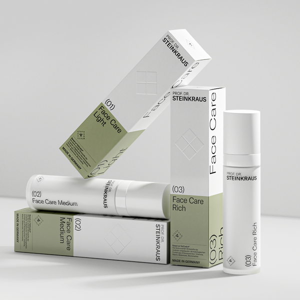 Hyaluron specialises in moisture retention and works effectively all the way down to the deeper layers of skin. It reduces irritation and plumps up the skin, making it a must for any bathroom cabinet worth its salt. The serum from the Prof. Dr. Steinkraus range is particularly effective: with 2.5% hyaluron, it is highly concentrated and contains all three molecular sizes of hyaluron. This is crucial because it offers you outstanding penetration twinned with both immediate and longterm effects. You can use hyaluron serum on its own, but we recommend applying it with the vitamin A or C serums. The combination results in synergies that significantly enhance the efficacy of the individual products. This delivers a real boost for your skin.